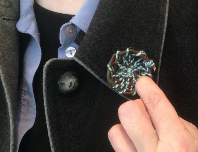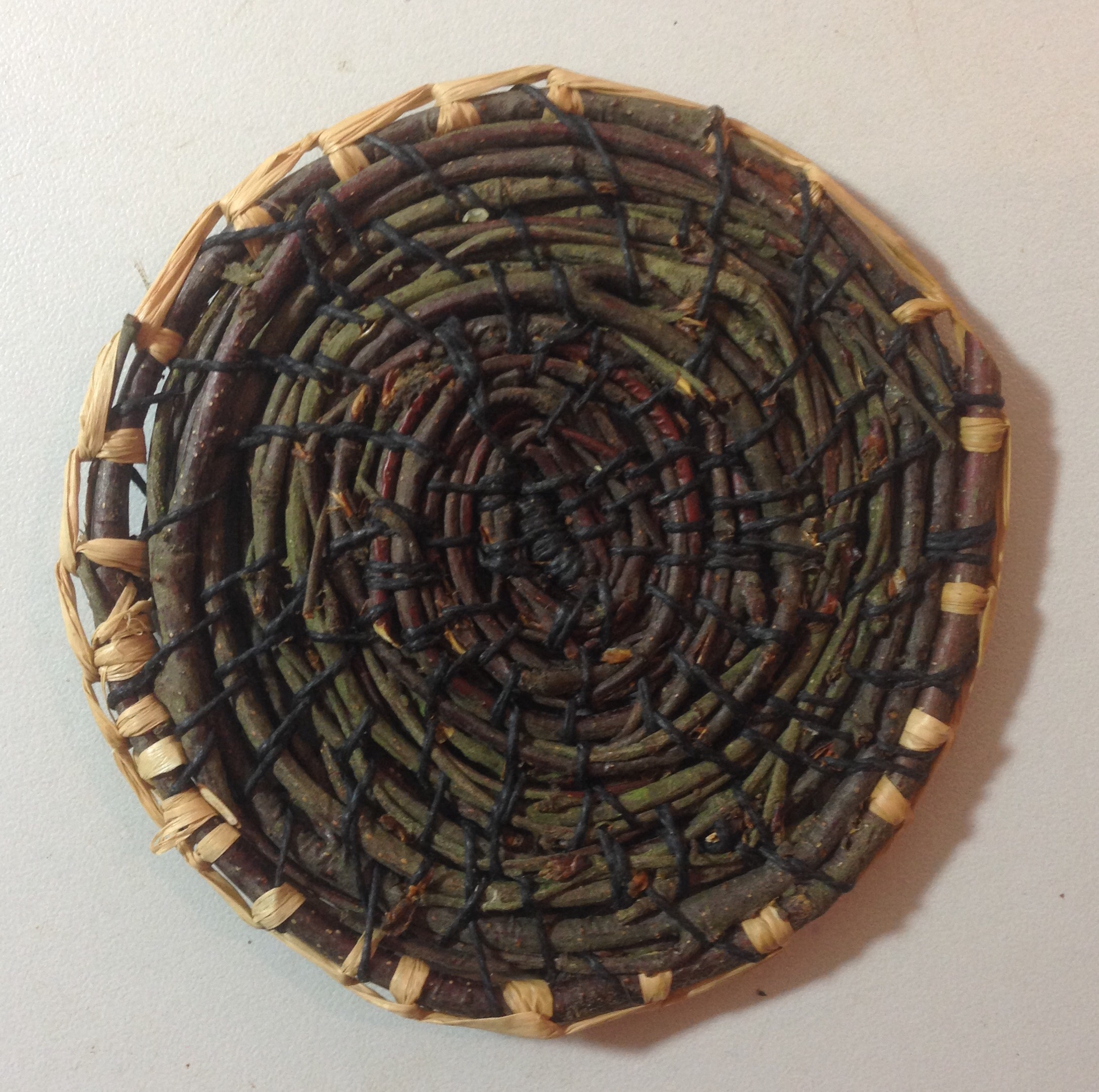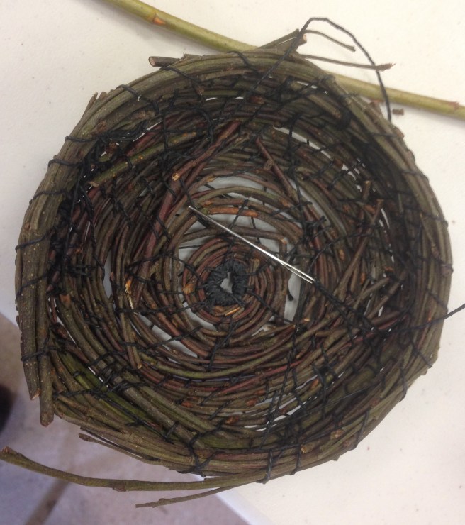 I had prepared and tied bundles of birch twigs to speed up the materials selection process, knowing we would be short of time. I liked the creative use of the raffia binding in this piece.