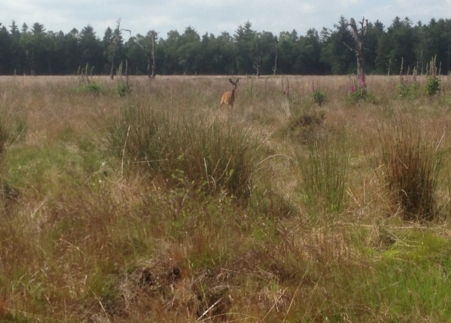 I think it must have caught my scent eventually. It barked and started to run further onto the bog, then stopped again to graze! Very relaxed. Is it used to seeing kind conservationists with well-controlled dogs? Or is it ill? I thought it looked a bit thin, especially around its back-end. Perhaps an elderly roe deer with poor eyesight and failing sense of smell? It ran fast enough though when it decided to go.