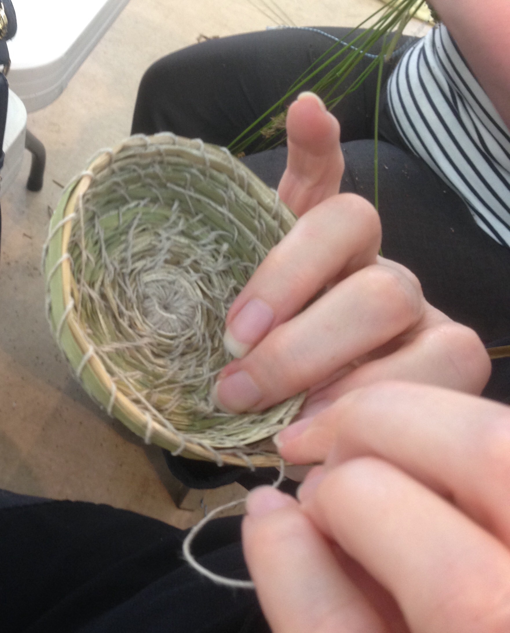 After lunch there were crafts tasters and creative writing on offer and I showed my group the method I’ve been using to make stitched baskets, using assorted bendy twigs and fibres. I think everyone enjoyed the process. We heard the silence of deep concentration anyway!